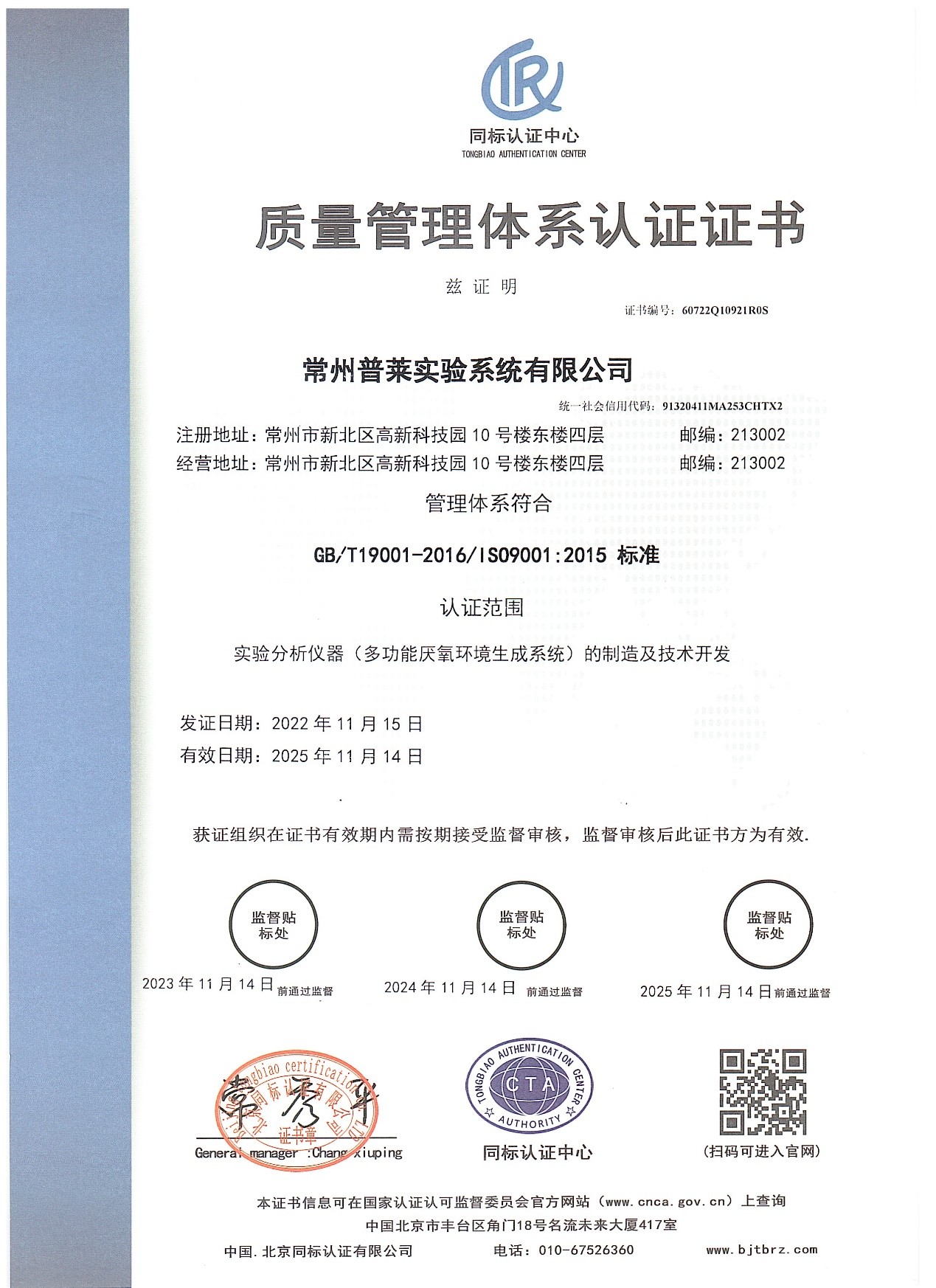 兔年伊始Q公司突飞猛q,喜讯不断。普莱实验凭借专业的研发队伍Q科学的企业理和全体员工的不懈努力Q经q认证公怸家全面、严格的指导和审核,认常州普莱实验pȝ有限公司W合体系标准的要求,q于2022q?1?5日顺利获得ISO9001质量理体系认证证书Q于2023q??0日获得CE认证证书?/span>